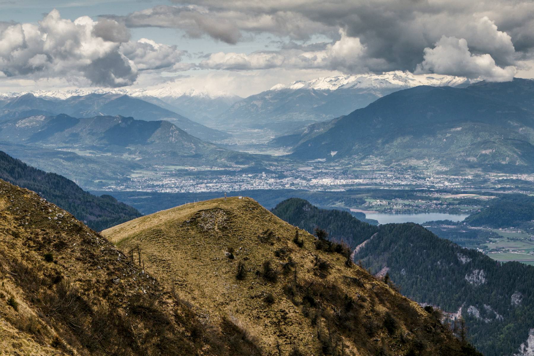 Oben angekommen eröffnete sich das volle Panorama. Im Norden zu unseren Füßen die berühmten Kärntner Flüsse und Seen, die Hohen Tauern auf unserer Augenhöhe, nach Osten und Westen die gesamte Kette der Karawanken und im Süden so ziemlich allen hohen Gipfeln des Triglav Nationalparks. Ein Traum! Ein echtes 360 Grad Panorama.