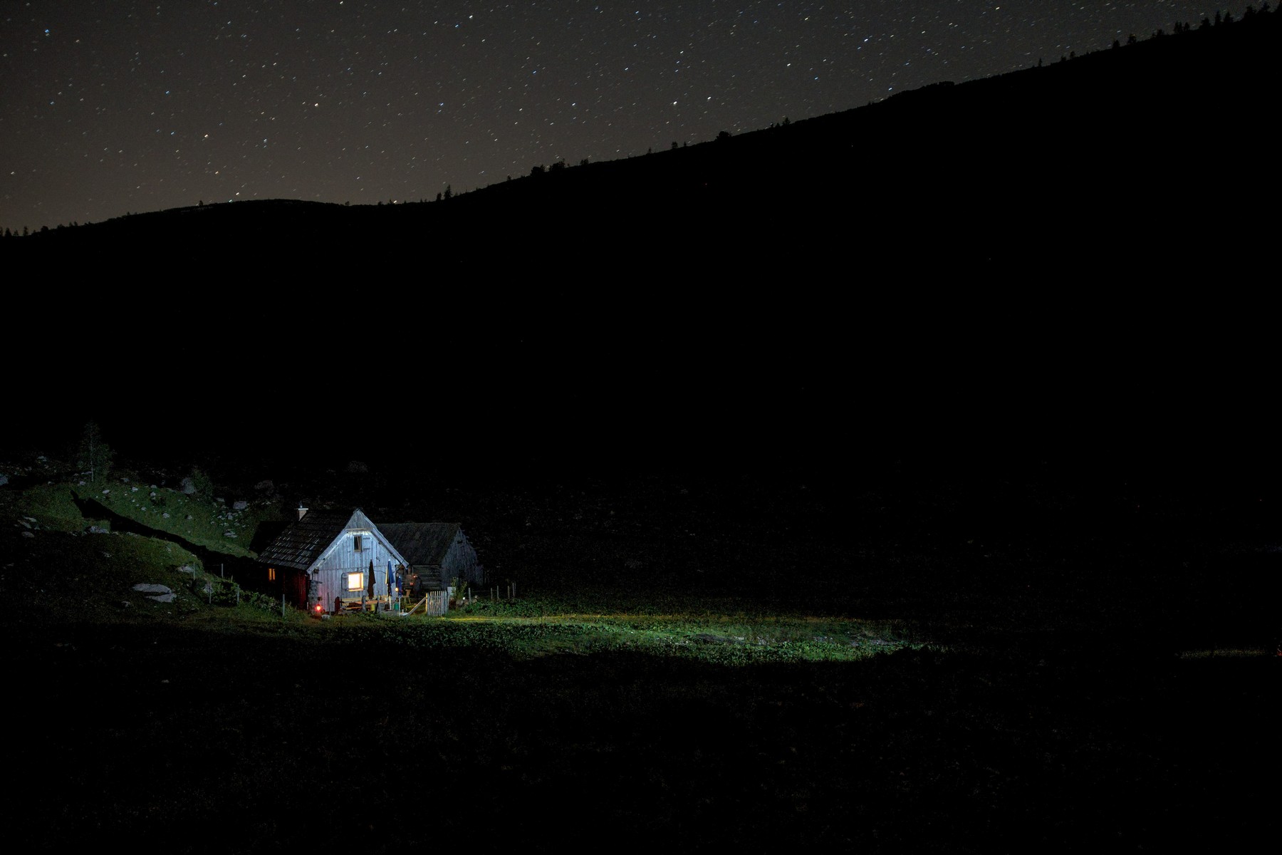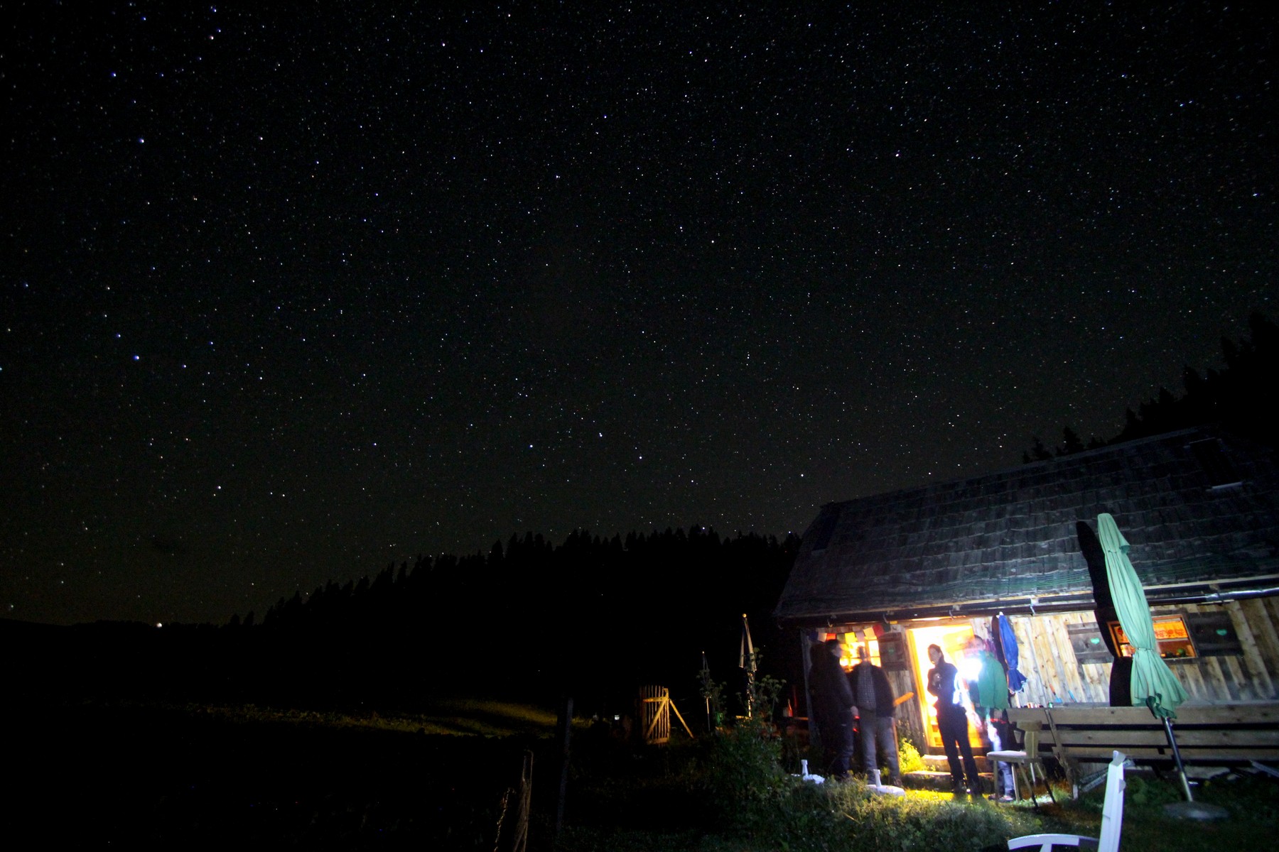 Wir reisen am Vorabend an. Flo M. ist mit dabei aber hat sein Rad gegen seine kleine Tochter getauscht. Wir bleiben natürlich zusammen und brauchen doch etwas länger bis wir das Tagesziel, die Hütte mit köstlichem Schweinsbraten, erreichen. Die Nacht beginnt und wir frieren uns unterm Sternenhimmel die Finger ab. Aber so ein Anblick ganz ohne Umgebungslicht muss einfach fotografisch festgehalten werden. Die Mitternacht führt mich ins Lager. Im Lager angekommen muss ich mich fast übergeben. Unter Atemnot schlussfolgere ich etwas langsam, dass doch so an die 15 Leute im Lager sind und vor sich hin schnarchen. Von den 15 haben wahrscheinlich 14 am Abend noch den köstlichen Schweinsbraten und das Sauerkraut genossen, vielleicht 10 haben das Sauerkraut schon so gut es geht verdaut. 10. Ein Gestank der seinesgleichen sucht.