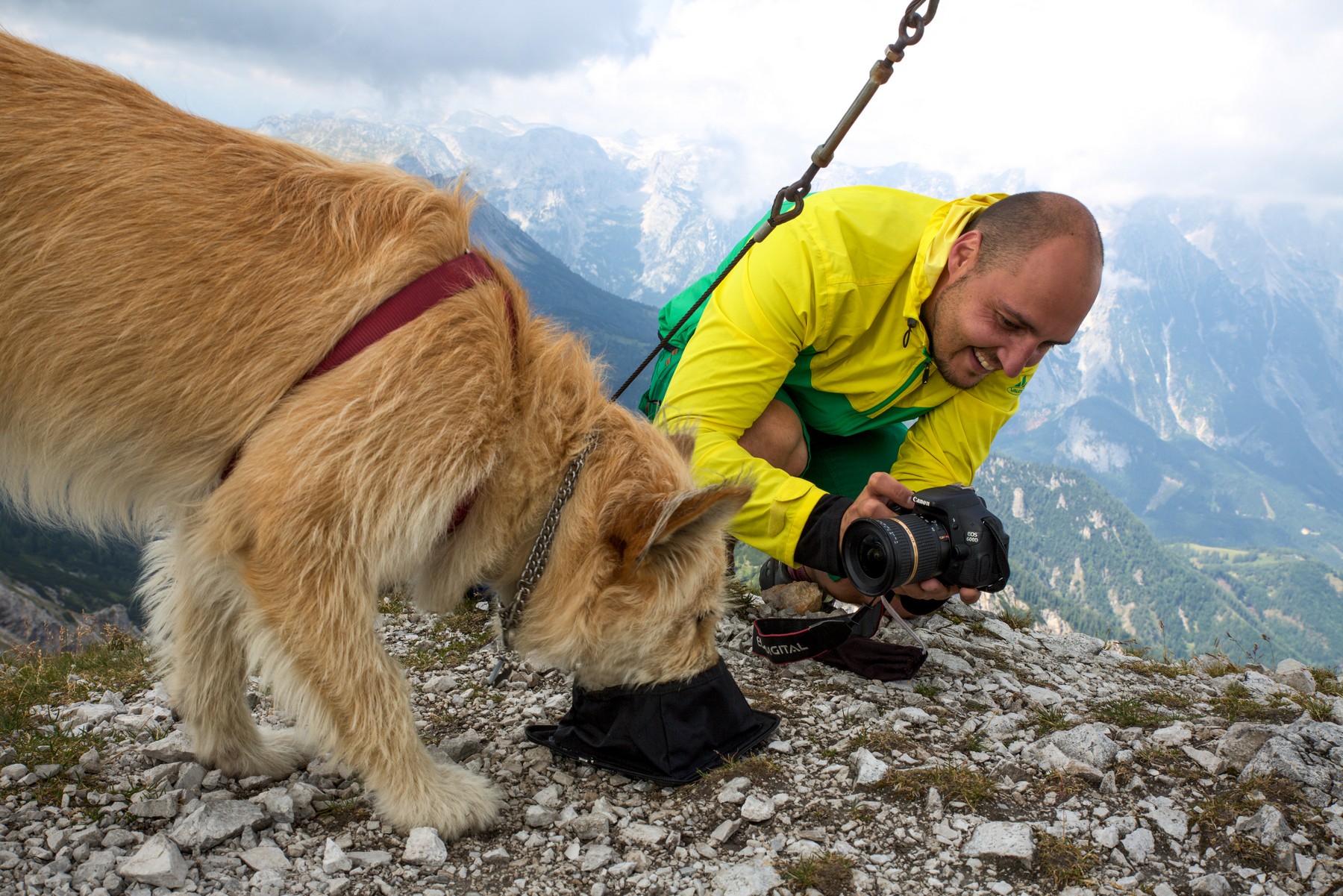 Wir folgen also dem falschen Weg – also dem Weg, den wir unter allen Umständen aus dem Weg gehen wollten. Aber es zeigt sich eine Abzweigung. Die führt zwar ins Nirgendwo aber die Richtung passt und die Motivation steigt auch. Der Tag bricht heran und es ist makelloses Wetter angesagt. Wir filmen ein bisschen, genießen die ersten Sonnenstrahlen und Jojo genießt das Wasser. Immer mehr schlecht als recht sehen wir den Trail, wie er sich zu unserem imposanten Ziel schlängelt. Noch immer waren wir ahnungslos, dass der Weg keineswegs zum Gipfel führen wird und wir nur knapp mit dem Leben davonkommen werden.