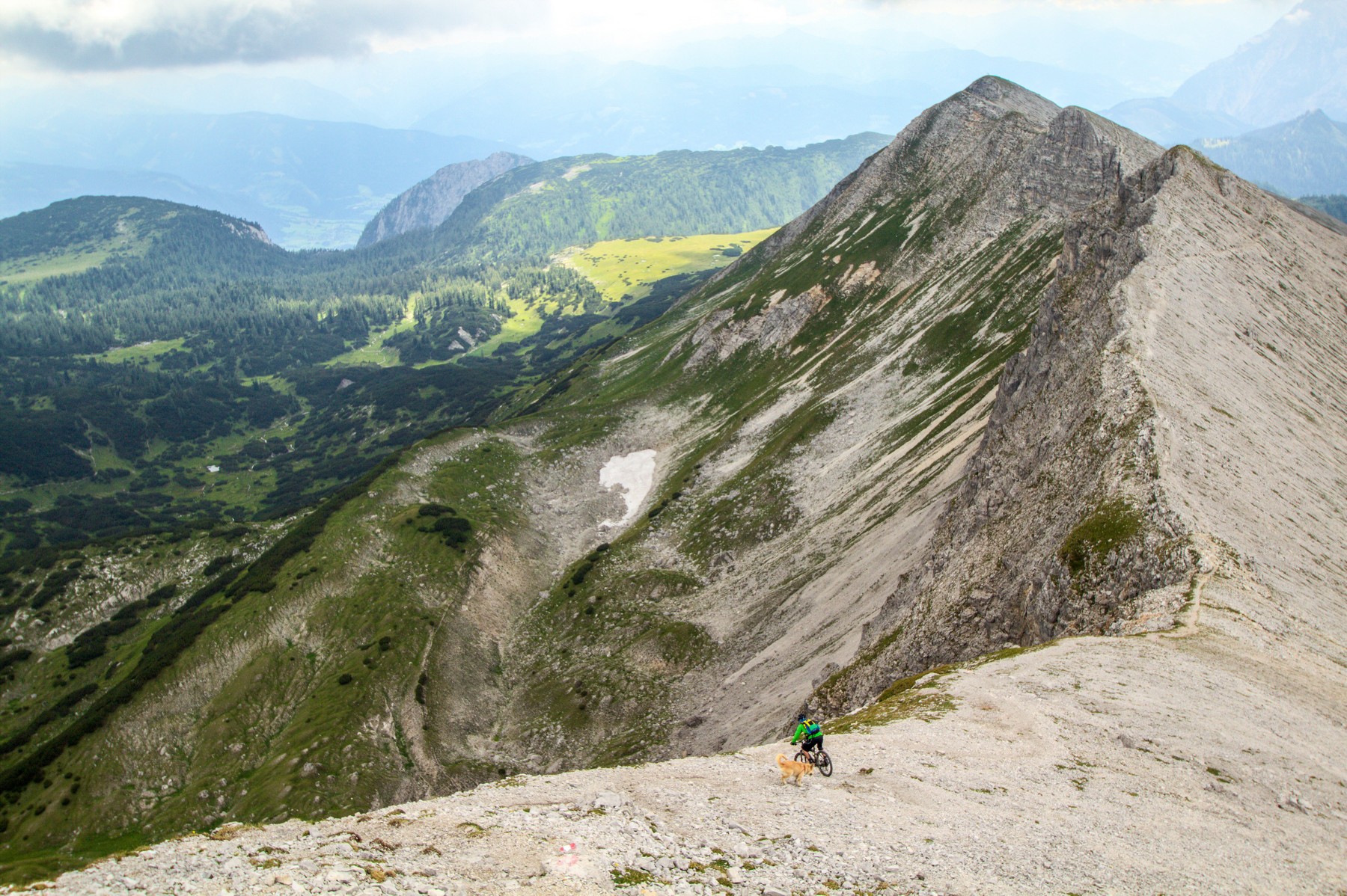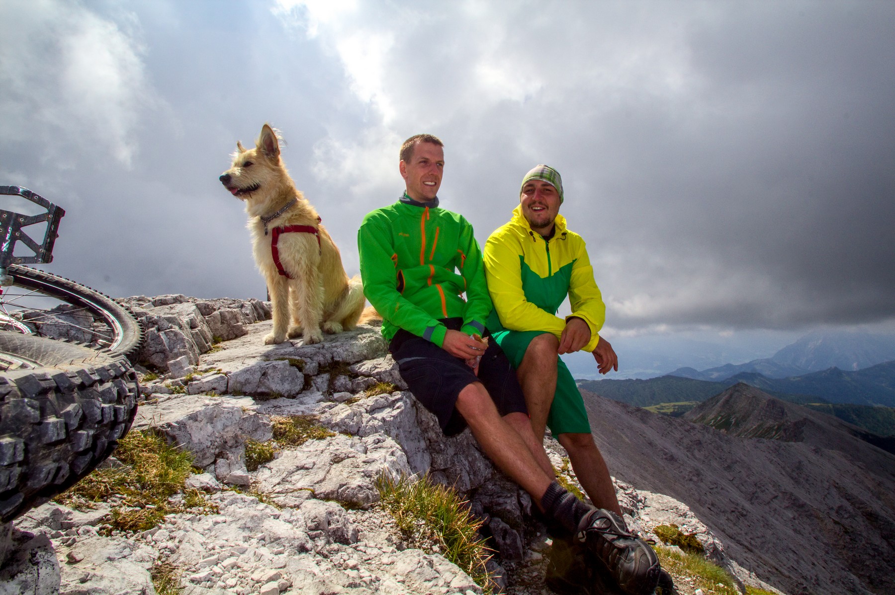 Angekommen, Jause genießen und entspannen. Ein paar Fotos gemacht, runter vom Gipfel, Video gedreht, zurück zum Ausgangspunkt der Hüttenübernachtung, kurz noch zu Mittag gegessen und dann bis ins Tal abgefahren. Ein Genuss und ohne den versteckten Weg und die Killerkühe wäre es der halbe Spaß gewesen!