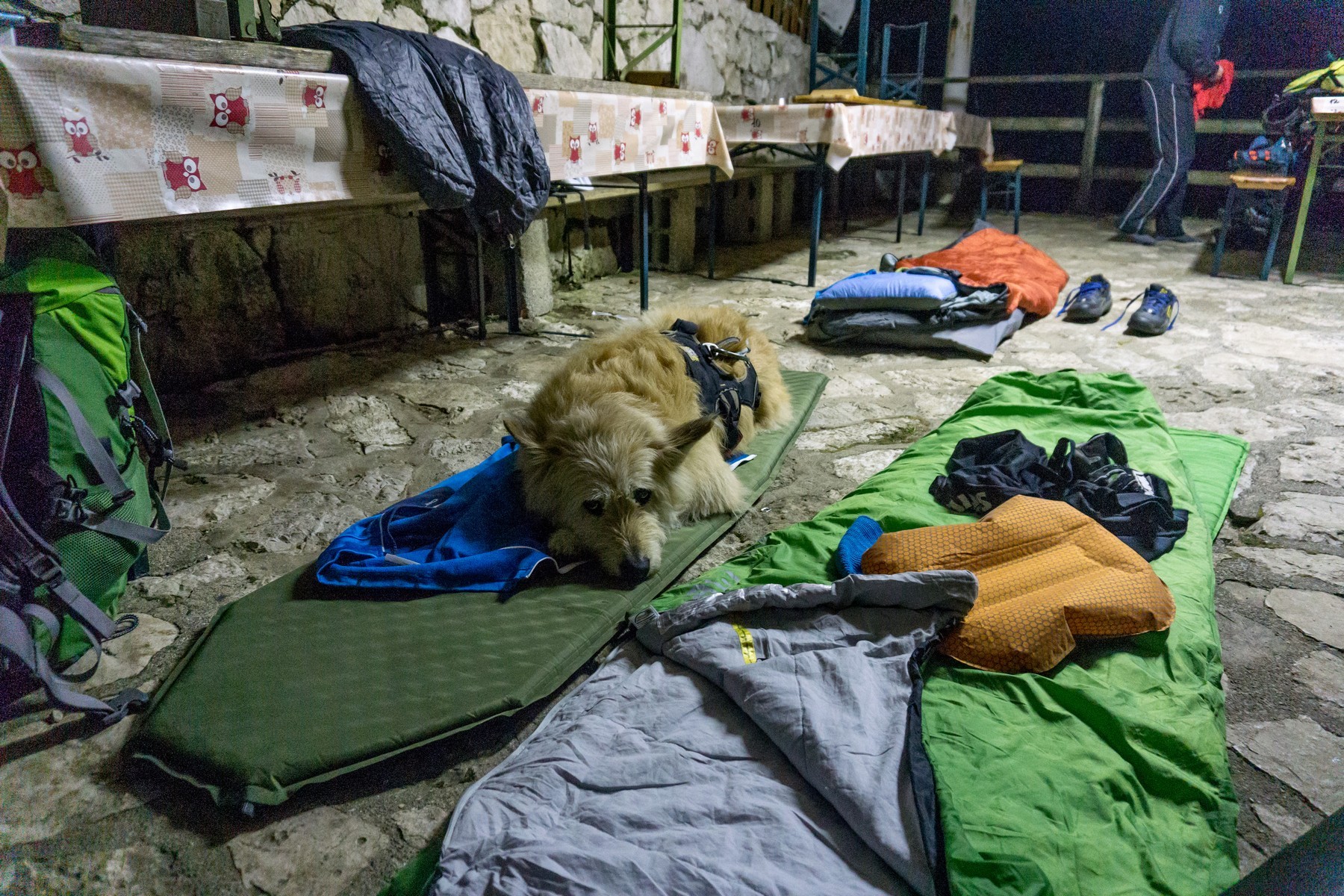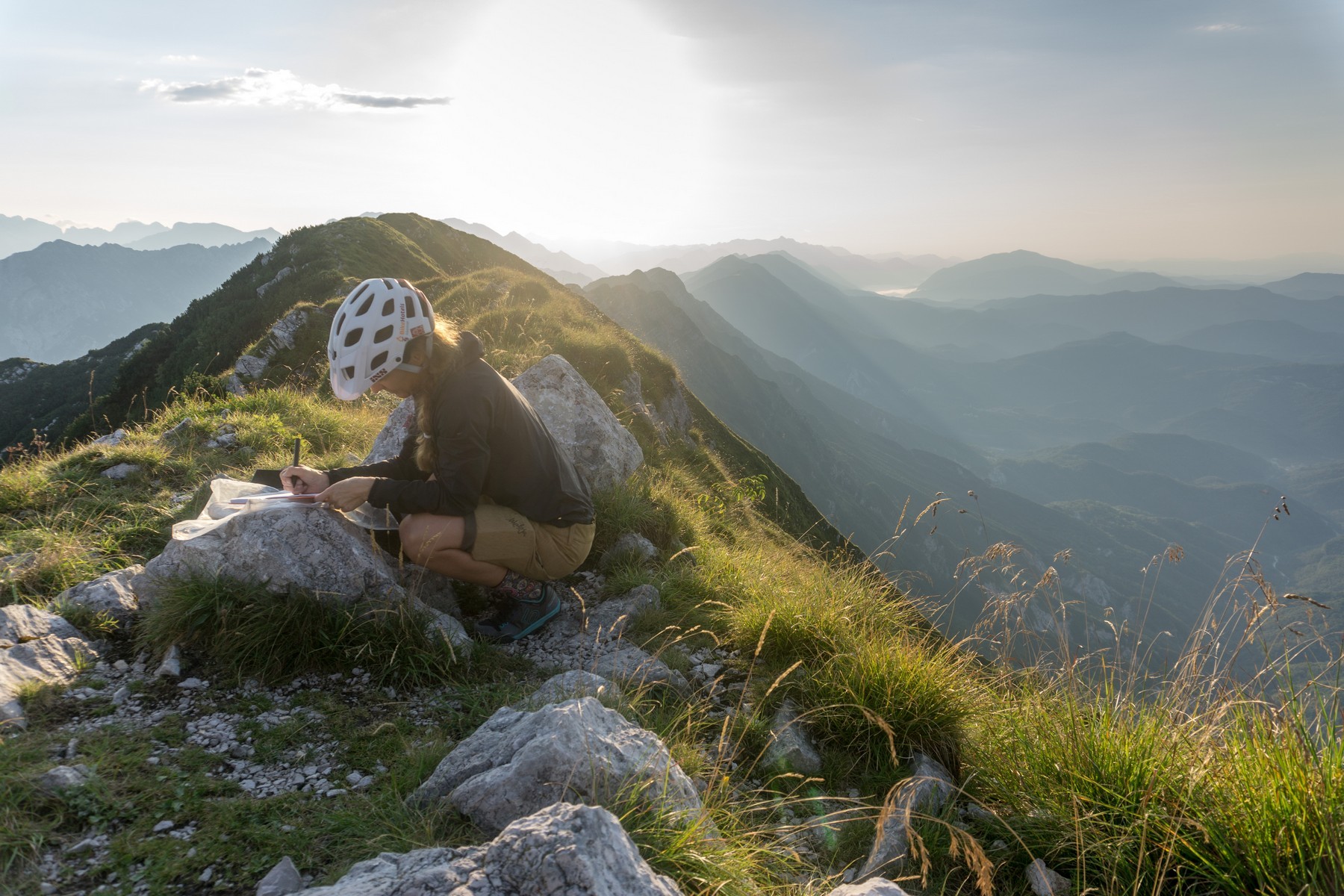 Die erste Trail-Abfahrt haben wir dann bei succo di mela (Apfelsaft) verarbeitet und uns auf die kommende Aufgabe, Aufstieg auf einen steilen felsigen 1.800m Gipfel, vorbereitet. Die Erkenntnis, dass alle Teilnehmer Gipfel-Biwak-New-Bees waren, hat unser Guide entspannt gesehen und freute sich, uns die neuen Blüten zu zeigen. Bei der Hütte waren viele Wanderer neugierig auf uns und auch sehr hilfsbereit für unser geplantes Vorhaben. Die Reaktionen waren, naja nicht gerade ermutigend, von „Ihr seids deppert!“ bis „Ähm, ich würde davon abraten!“. Aber da war wohl unsere Übersetzung aus dem Italienischen nicht ganz korrekt oder was heißt „questa montagna é stronzo“. Dieser Berg hat Geschichte. Natürlich bekamen wir auch Tipps für die Tour von erfahren italienischen Bergsteigern, welche auch schon mal am Gipfel biwakiert hatten.