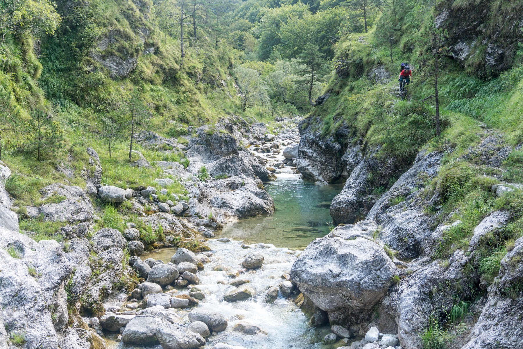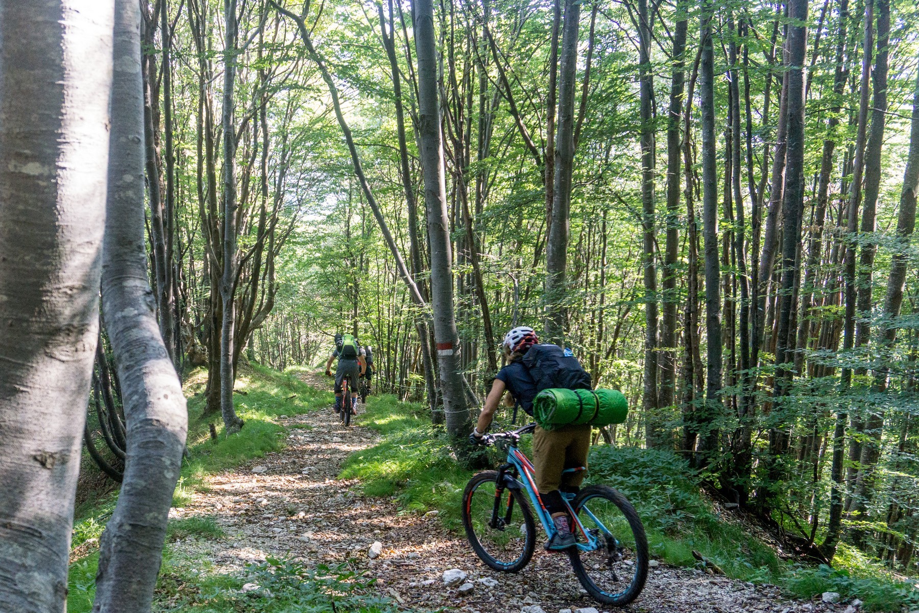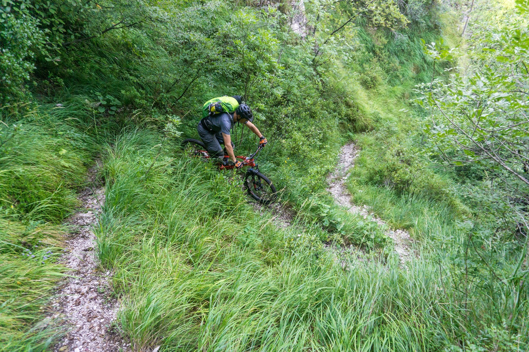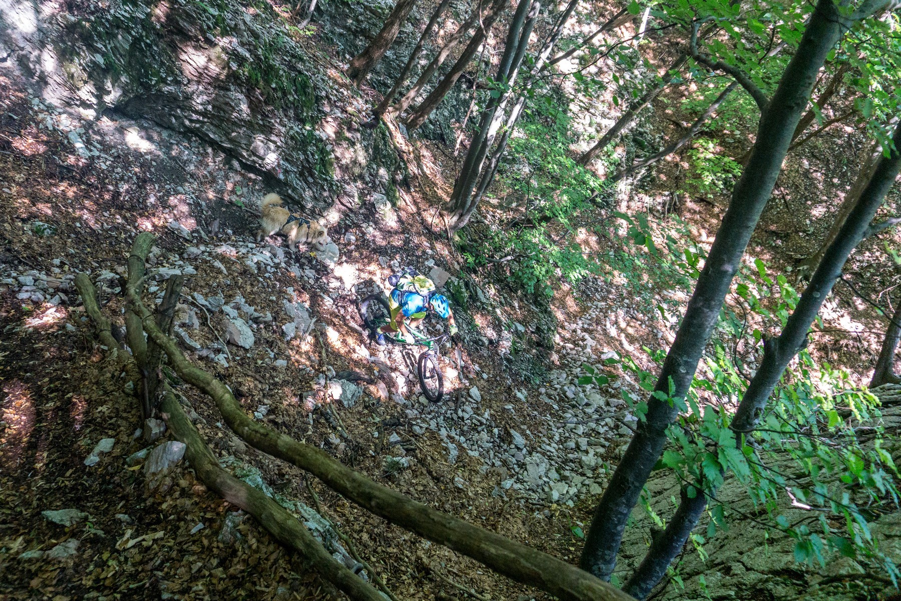 Nach mehr als 4 Stunden Bike- und Gehzeit waren wir noch immer im Dickicht des friulanischen Hinterlandes unterwegs. Als letzter Anstieg warteten dann nochmals ca. 300 hm auf uns. Platt und am Ende, gönnten wir uns im 100hm Rhythmus in brütender Sommerhitze kurze Erholungspausen um den finalen Anstieg zu schaffen.