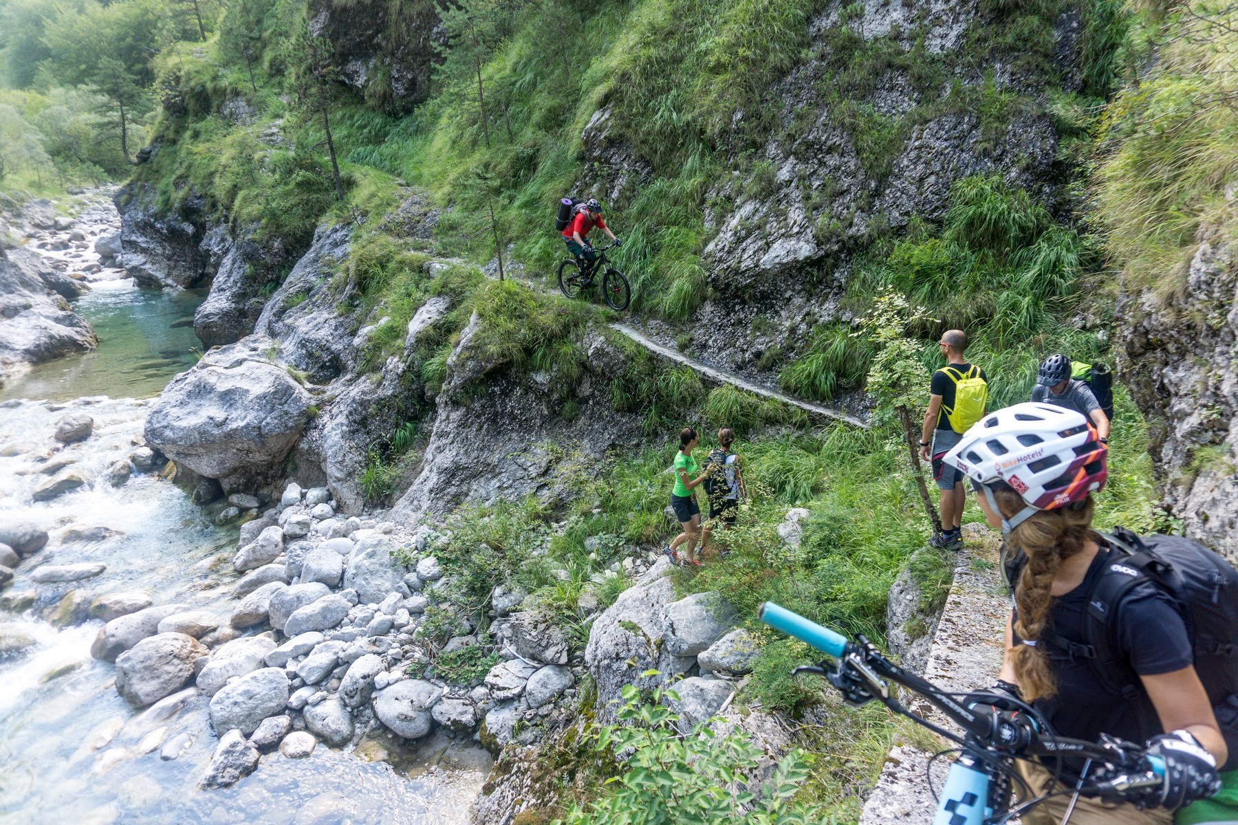 Mit viel Tragen und viel Schieben, manchmal etwas Fahren und dann wieder von vorne, ging es den Berg hinunter. Ein paar super spaßige Stellen waren drin, die wir alle voll ausgekostet haben. „Leute, das war jetzt aber superflowig, oder!?“ – „Ja, war echt super!“ – Und dann schon wieder absteigen und abwärts schieben.
