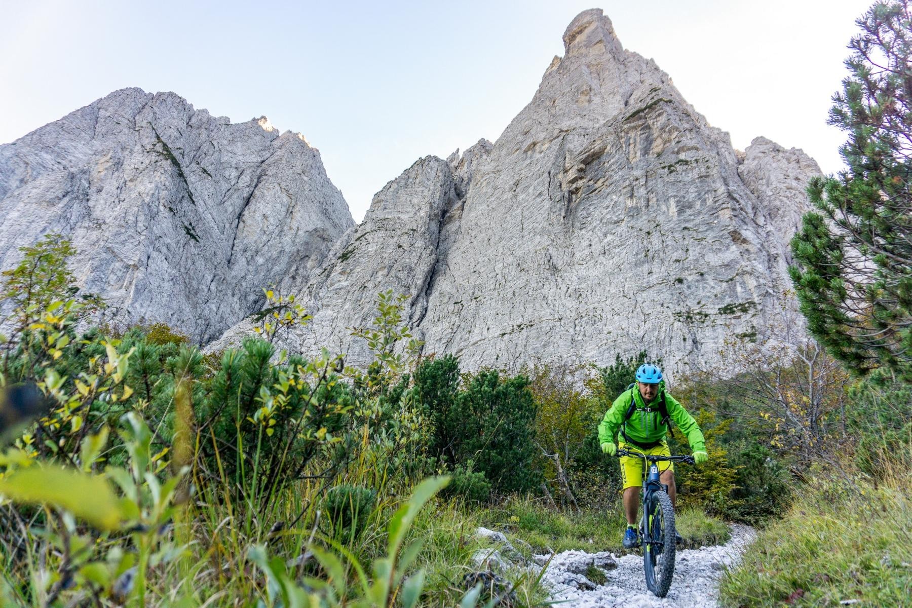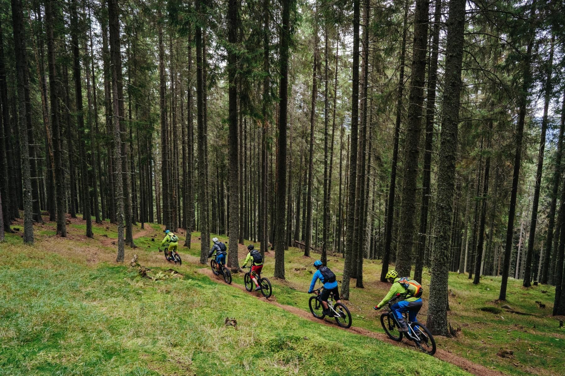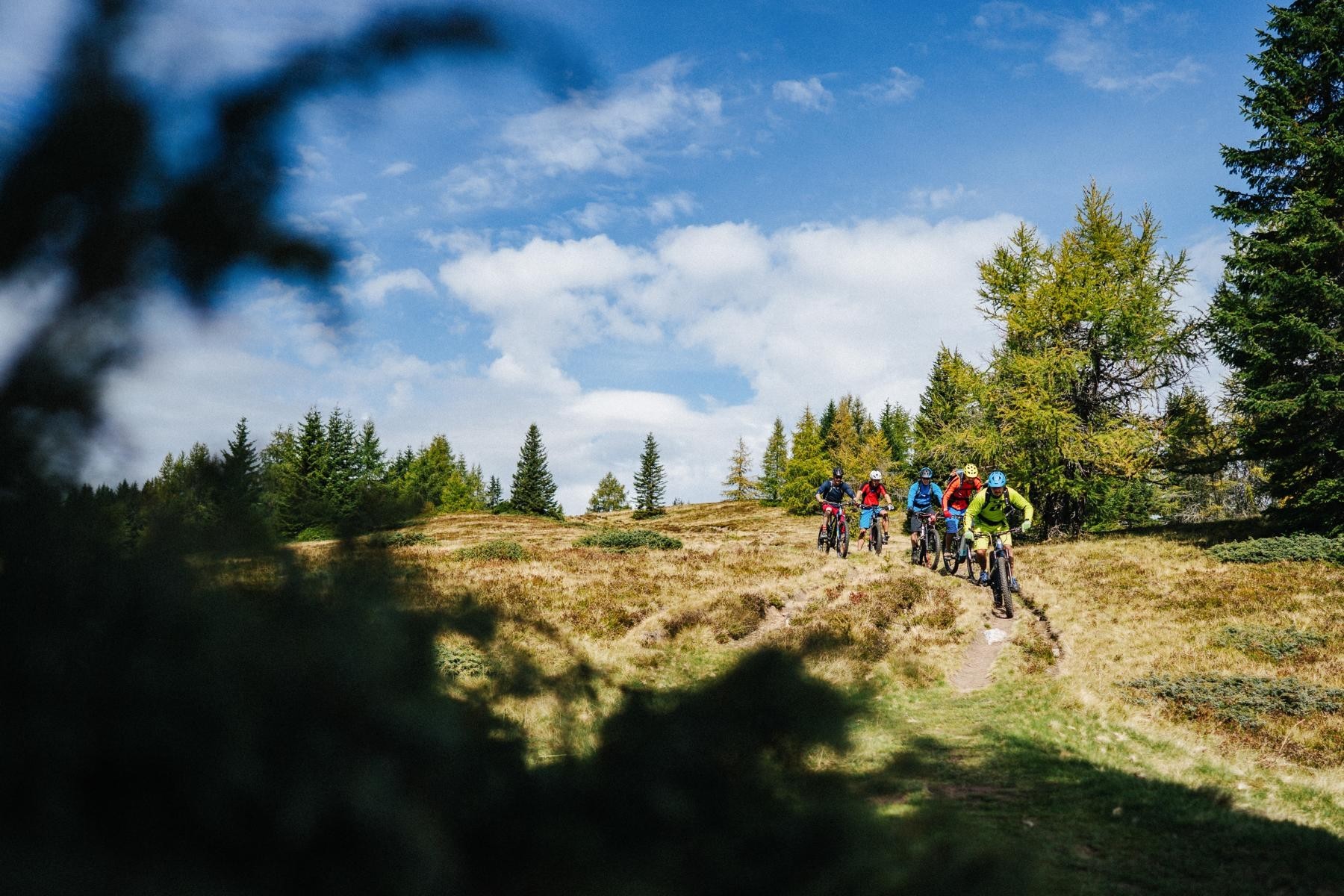 Für den ersten Tag wählen wir mit einer großen Gruppe flowige und wurzelige Trails in den Nockbergen in Kärnten, wo wir von anderen E-Mountainbikern begleitet wurden, sowie am zweiten Tag in einer kleinen Gruppe steinige Herausforderungen in Moggio Udinese im Friaul.