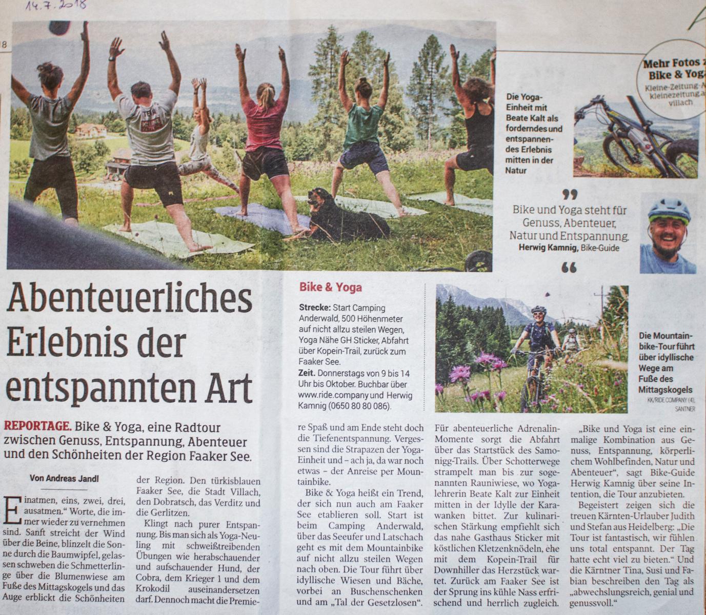 Danke an Andreas Jandl von der Kleinen Zeitung für den tollen Artikel. Wir meinen auch, daß Andreas eine sehr gute Figur am Mountainbike und und auch bei der Yoga Einheit gemacht hat.